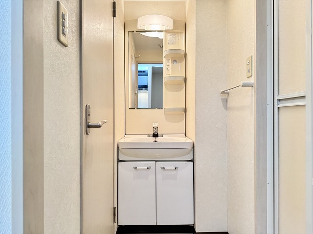 脱衣所でゆったり着替えができますね。高いニーズの洗面台完備の快適な物件となっています。エアコン完備なので、夏や梅雨の時期も安心です。ダニなども気にならないフローリングの快適物件です。