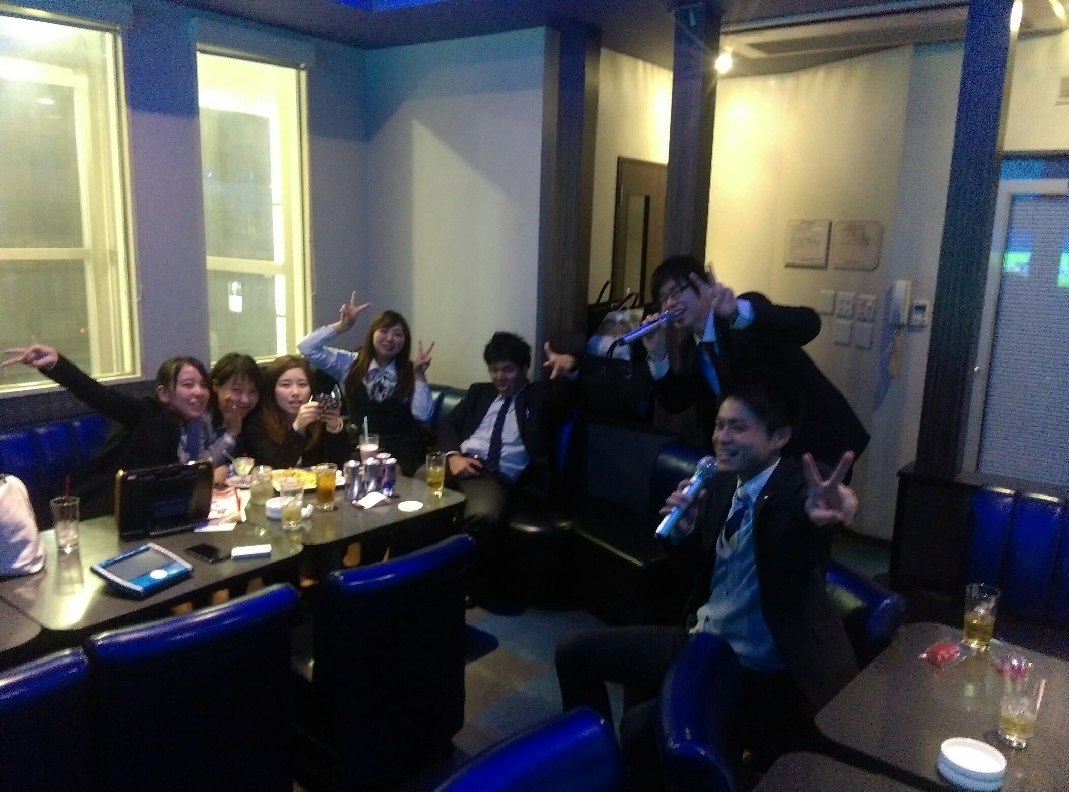 カラオケで熱唱。