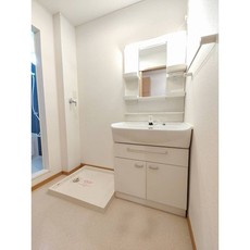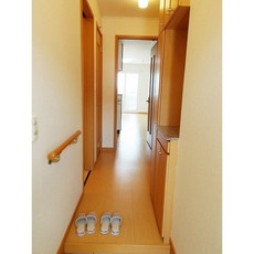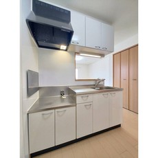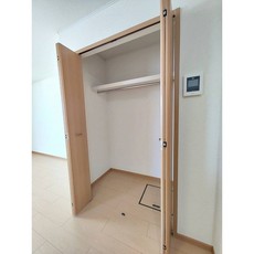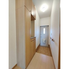 | 設備(共用) | 宅配BOX、ケーブルテレビ、敷地内ごみ置き場、防犯カメラ | 設備(専有) | バストイレ別、フローリング、洗濯機置き場室内有り、プロパン、冷暖房エアコン、クローゼット、BS放送、浴室乾燥、TVモニタ付インターフォン、洗面所、洗面台有(独立)、カウンターキッチン、バルコニー、シューズボックス |