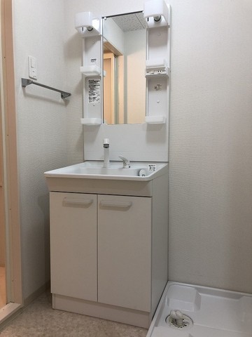 | 設備(共用) | オートロック、エレベーター、敷地内ごみ置き場 | 設備(専有) | バストイレ別、全室フローリング、洗濯機置き場室内有り、対面キッチン、シャワートイレ、温水洗浄便座、プロパン、冷暖房エアコン、照明、収納一箇所、シャンプードレッサー、TVモニタ付インターフォン、洗面所、洗面台有(独立)、カウンターキッチン、バルコニー、TVドアホン、シューズボックス、脱衣所 |