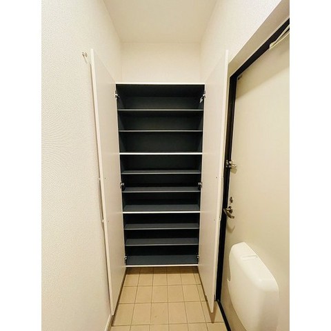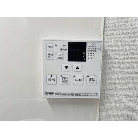 | 設備(共用) | 宅配BOX、ケーブルテレビ、敷地内ごみ置き場、防犯カメラ | 設備(専有) | バストイレ別、フローリング、洗濯機置き場室内有り、追い焚き、シャワートイレ、温水洗浄便座、プロパン、冷暖房エアコン、照明、クローゼット、CS放送、BS放送、浴室乾燥、TVモニタ付インターフォン、ガスコンロ付、洗面所、洗面台有(独立)、コンロ口数二口、バルコニー、シューズボックス |