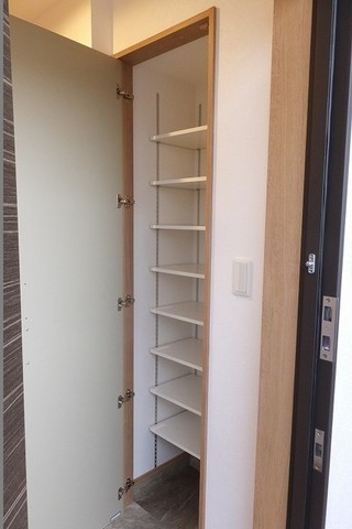 | 設備(共用) | オートロック、エレベーター、宅配BOX、ケーブルテレビ、防犯カメラ | 設備(専有) | バストイレ別、フローリング、洗濯機置き場室内有り、追い焚き、システムキッチン、シャワートイレ、温水洗浄便座、冷暖房エアコン、クローゼット、ウォークインクローゼット、浴室乾燥、TVモニタ付インターフォン、洗面台有(独立)、バルコニー、シューズボックス |