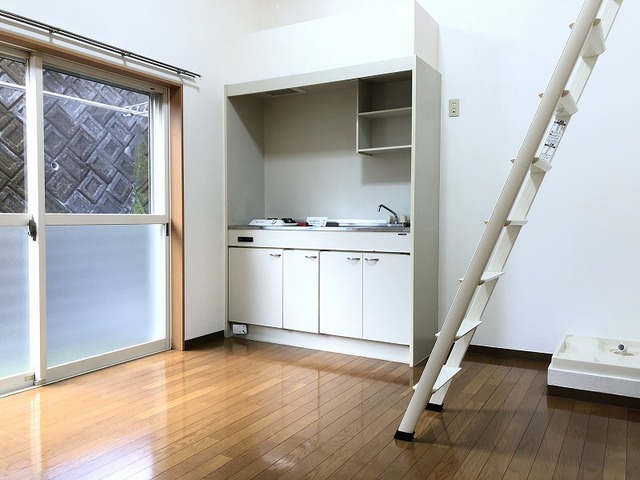 | 設備(共用) | 設備(専有) | バストイレ別、フローリング、洗濯機置き場室内有り、キッチン専用、ロフト、プロパン、冷暖房エアコン、照明、クローゼット、収納、TVモニタ付インターフォン、ガスコンロ付、洗面台、コンロ口数一口、角部屋、バルコニー、シューズボックス | |