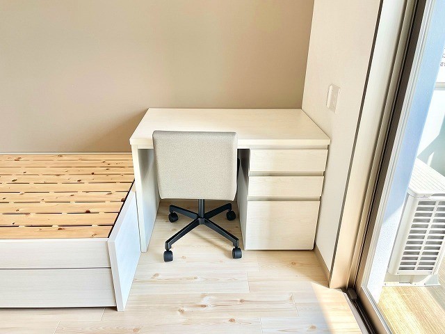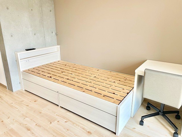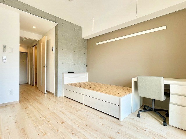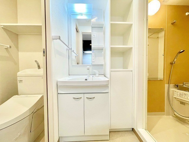 | 設備(共用) | オートロック、エレベーター、宅配BOX、敷地内ごみ置き場、防犯カメラ | 設備(専有) | バストイレ別、フローリング、洗濯機置き場室内有り、シャワートイレ、家具付、温水洗浄便座、冷暖房エアコン、照明、クローゼット、収納、シャンプードレッサー、浴室乾燥、コンロIH、洗面所、洗面台有(独立)、バルコニー、シューズボックス |